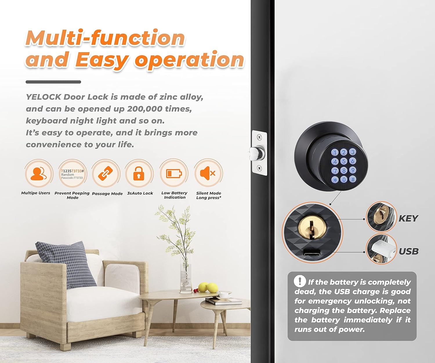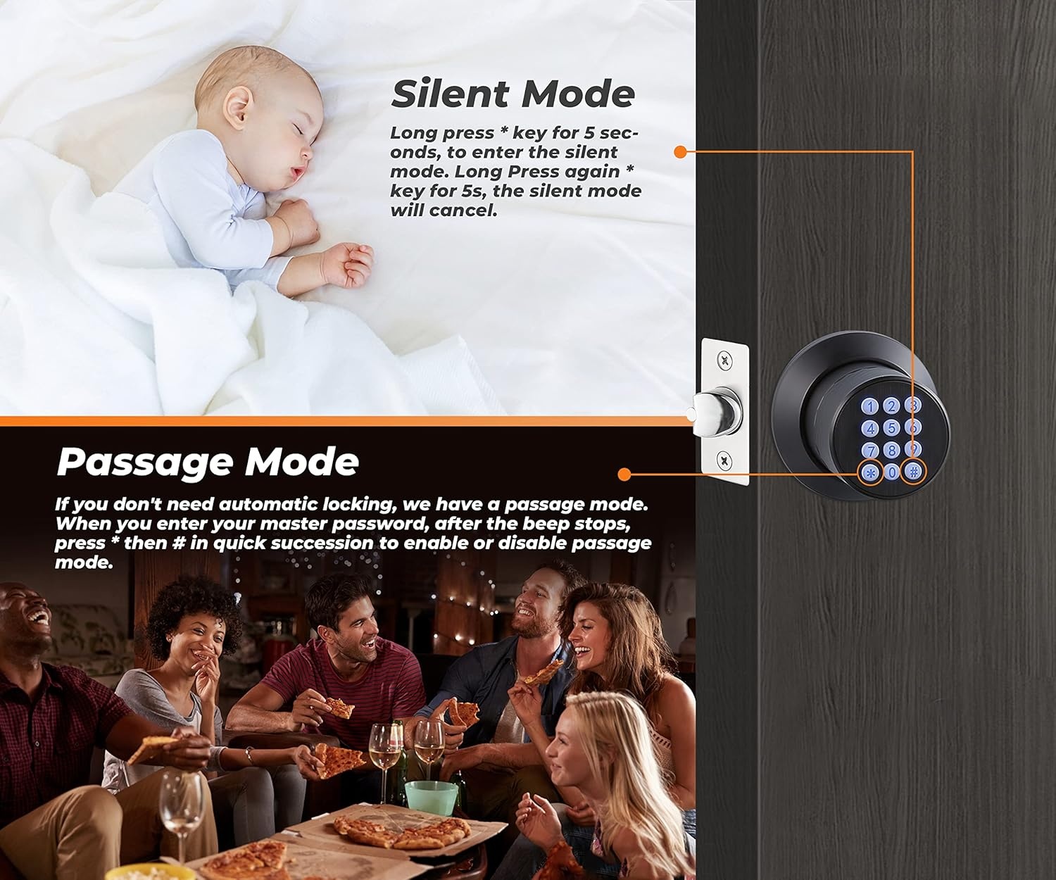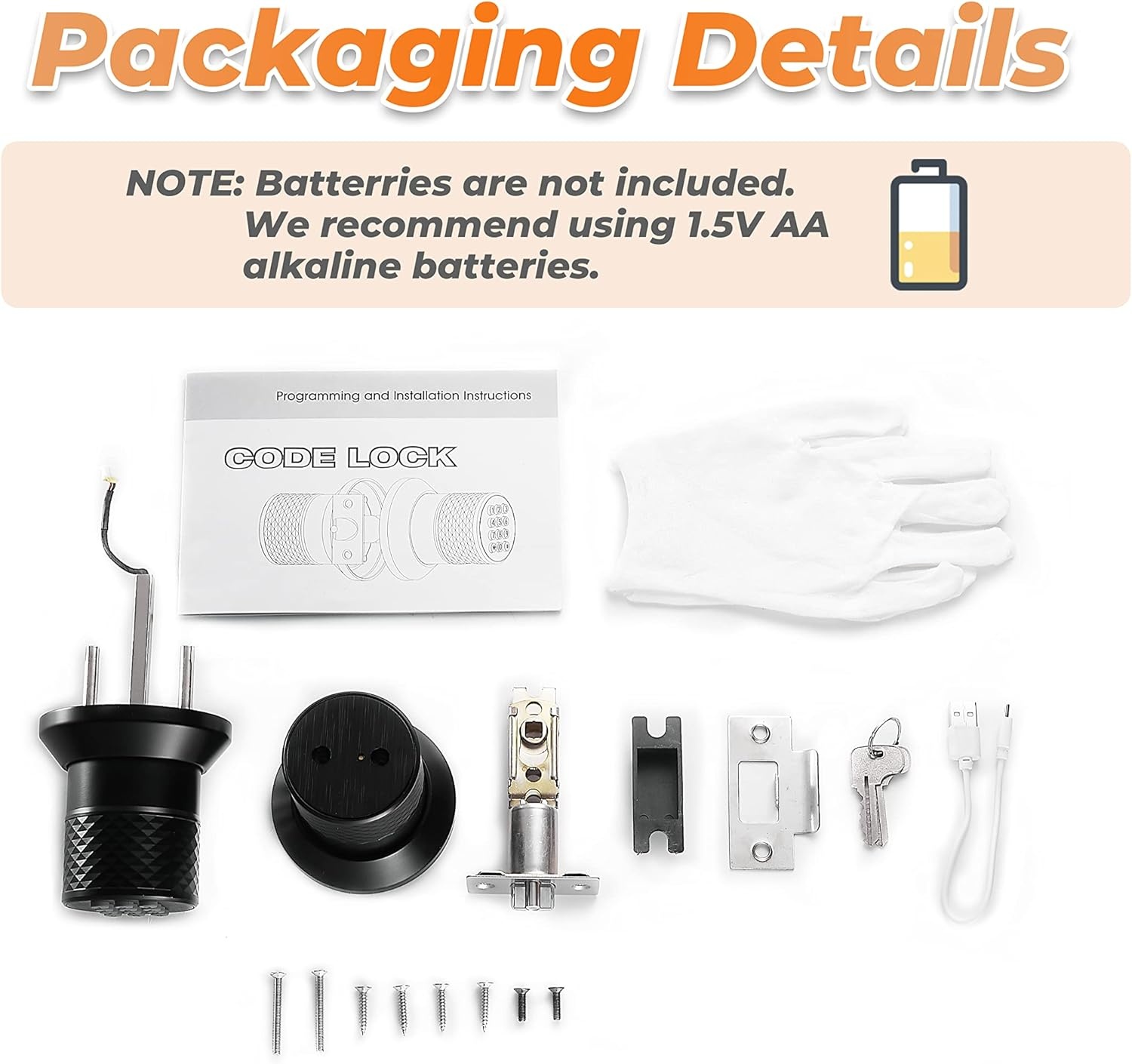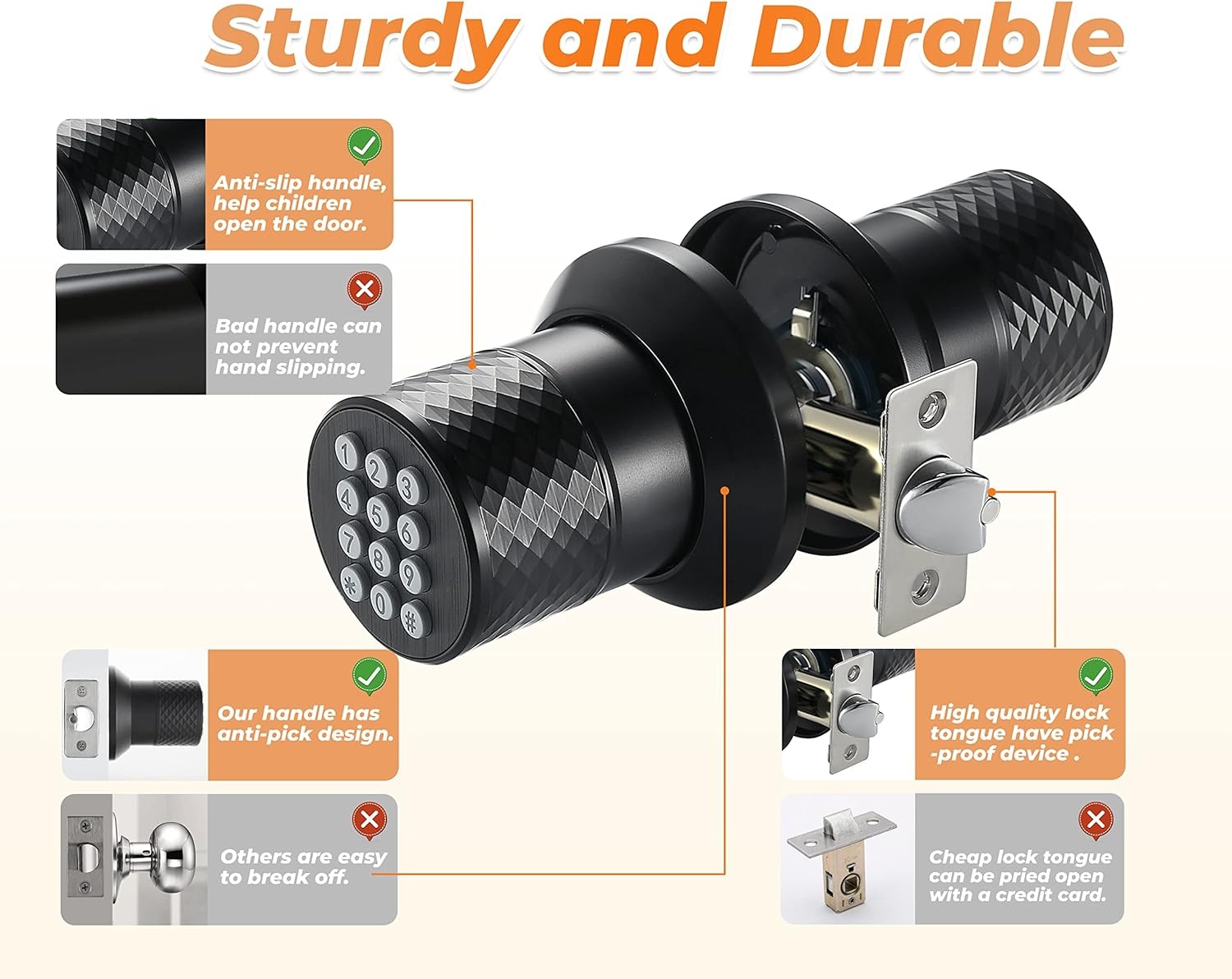 Keypad Door Knob Lock, Keyless Entry Door Knob with Anti-Slip Handle, Auto Lock, Electronic Black Door Knob, Safe and Easy Installation for Home, Office, Hotel and Garage