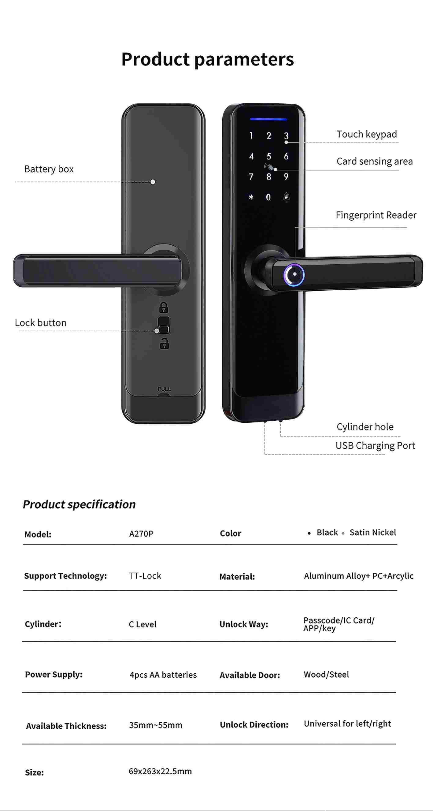 Smart Lock V-FP-A270 with TTLock App