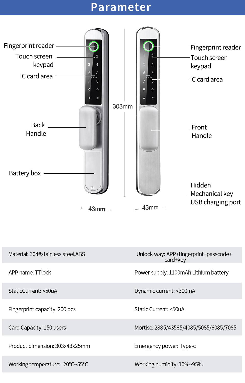 Home > SMART LOCKS > Smart Slim Lock work with TTLock App V-FP-A211