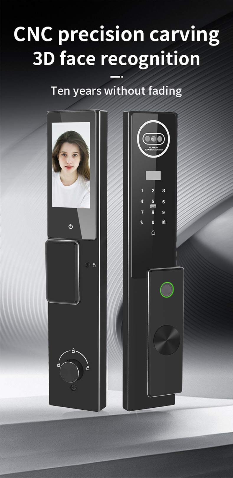3D Face Recognition Smart Lock with HD Camera & Doorbell | Keyless Entry via Fingerprint, Passcode, IC Card, Key | Mortise Lock | Auto-Lock | App Control | Works with TUYA App