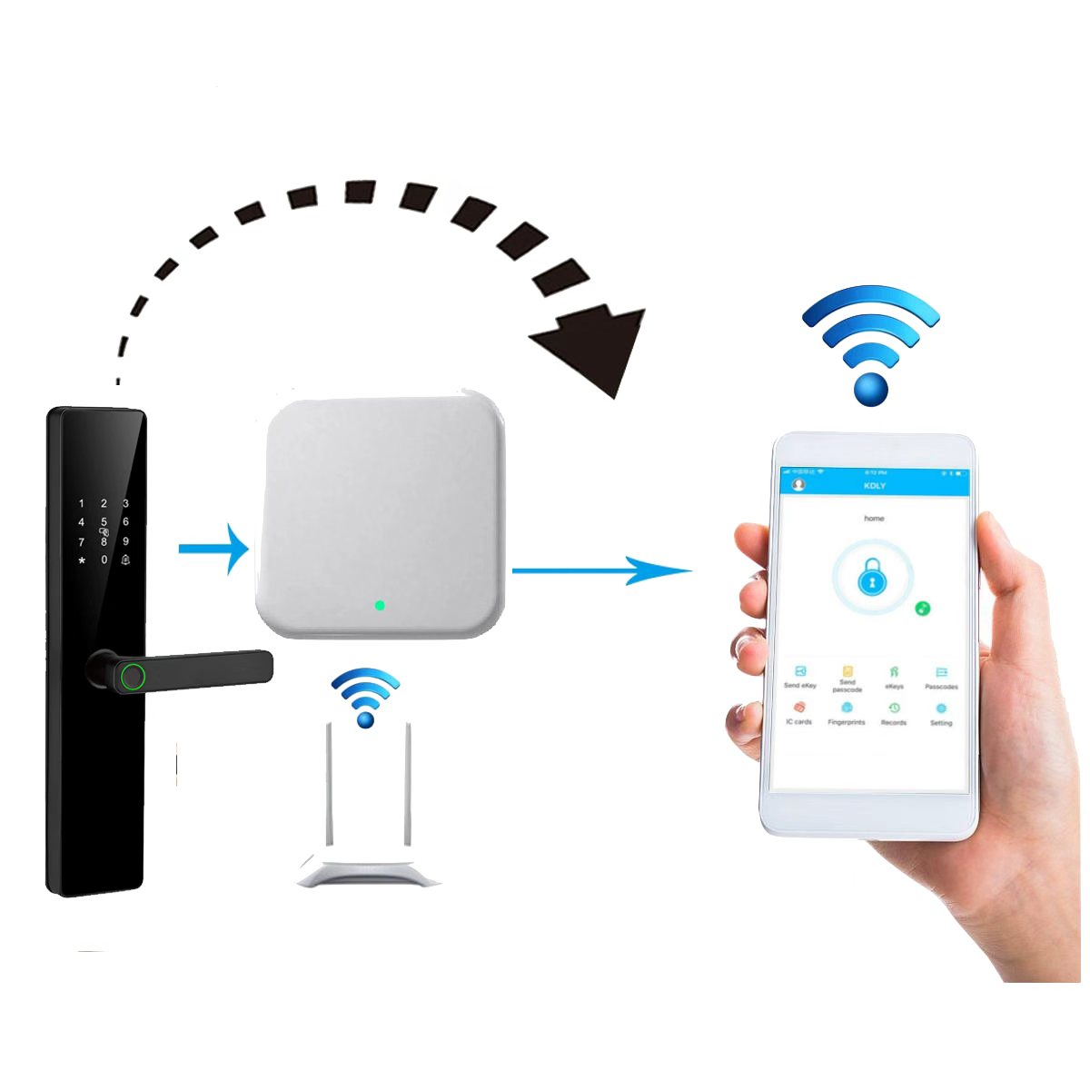 With a net gateway connected to the Internet, you can get a continuous connection of smart locks with your smartphone. Thus, the functions of the locks available only during the Bluetooth contact of the lock with your phone (deleting cards and passwords, self-assignment of passwords, reading records) will be available to you online anywhere there is internet on your smartphone!